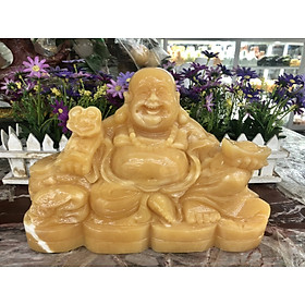 Chất liệu: Đá ngọc Hoàng Long Kích thước: Dài 50 cm x Rộng 20 cm x Cao 34 cm Khối lượng: 40 kg Phật Di Lặc trong Phong thủy Còn gọi là "Phật Cười", Di