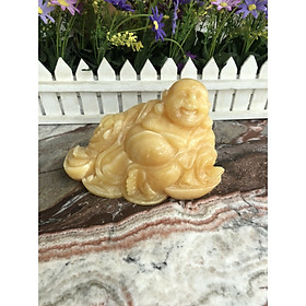 ✨Tượng Phật Di Lặc ngồi trên thỏi vàng chiêu nạp tài lộc phong thủy đá ngọc hoàng long - Dài 16cm