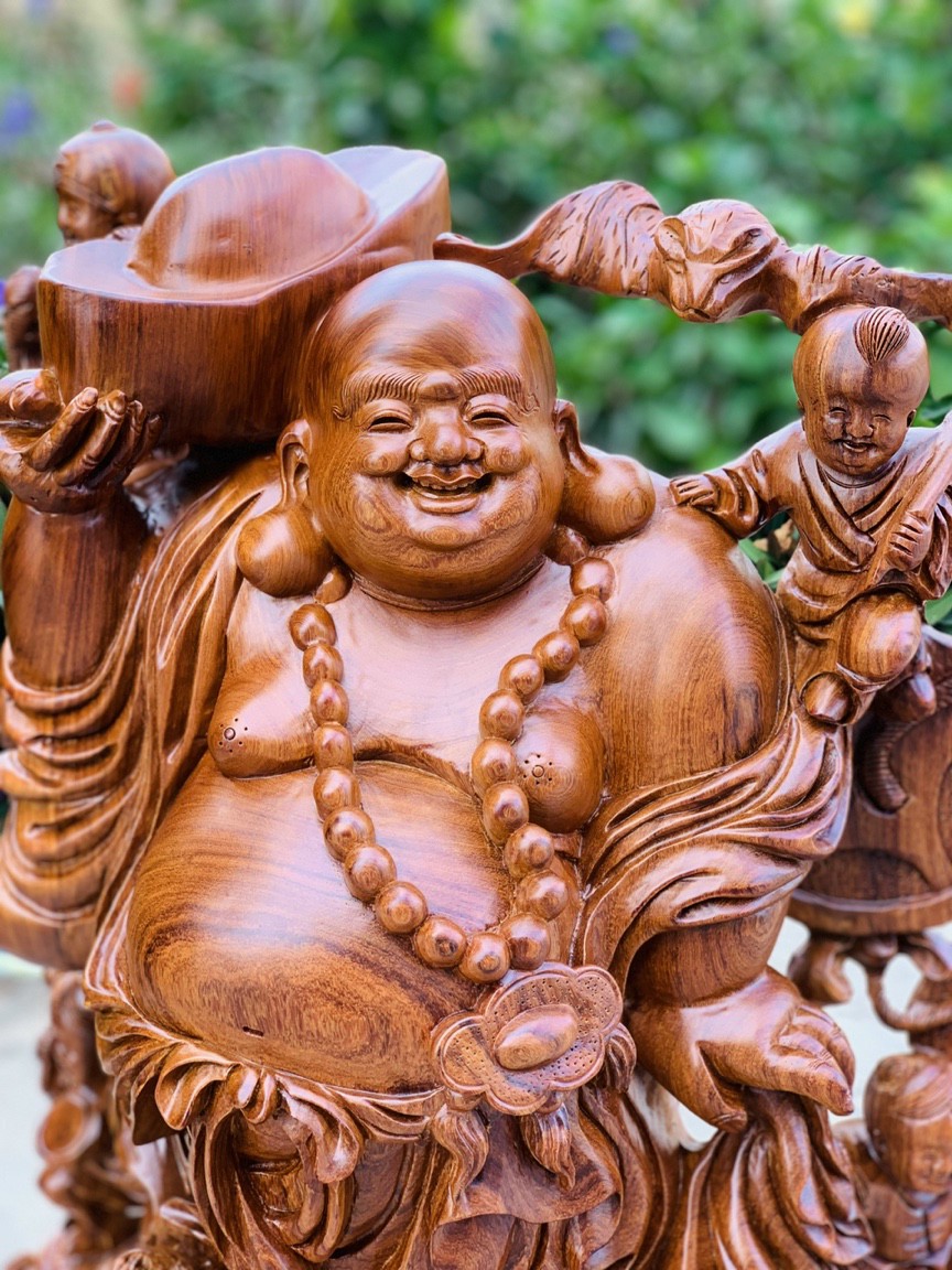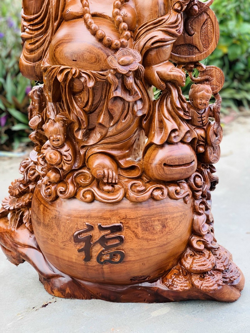 Tượng Phật Di Lặc Ngũ Phúc Gỗ Hương Việt Liền Nguyên Khối, rộng 83 cao 43 sâu 33 cm
