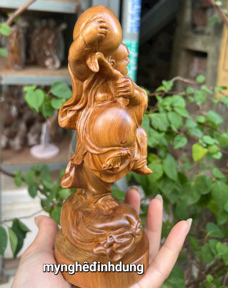 Mua tại TiktokTượng phật mini vác đào được làm bằng chất liệu gỗ bách xanh liền khối tự nhiên 100% Kt cao 20x8x8cm _ Tượng được chạm khắc gọt tỉa vô cùng tỉ mỉ tinh xảo kỳ công. Đi hầu hết tất mọi chi tiết góc ngách nội dung hoa văn của tượng đều được gọt tỉa chỉnh sửa sắc nét hoàn toàn bằng tay thủ công truyền thống.