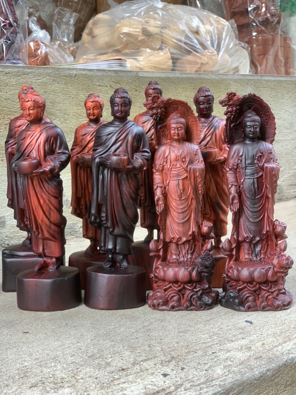 ✨Tượng phật thích ca khất thực bằng gỗ trắc đỏ đen kt cao 20