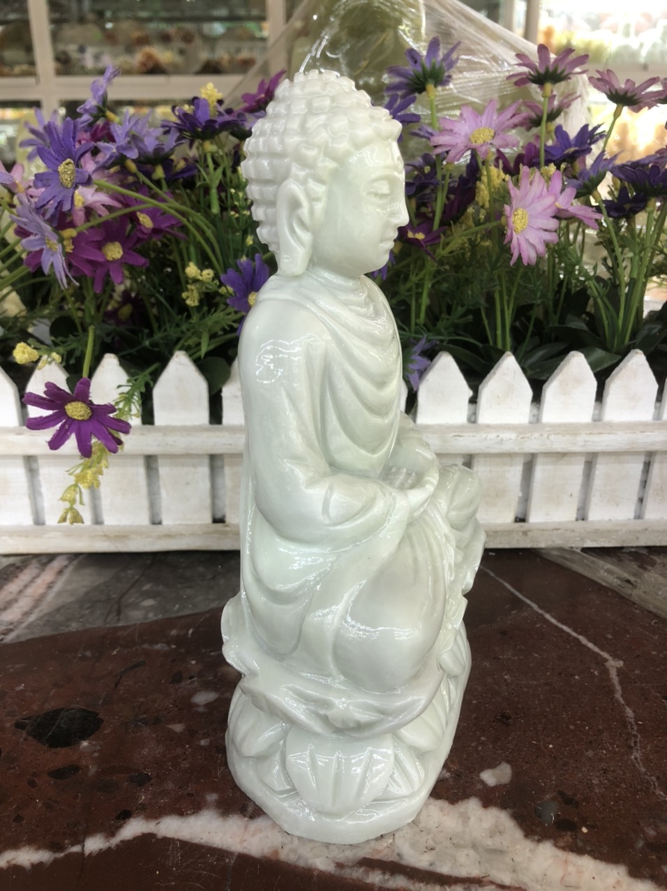 ✨Tượng Phật Thích Ca Mâu Ni ngồi đài sen đá trắng xanh - Cao 20 cm