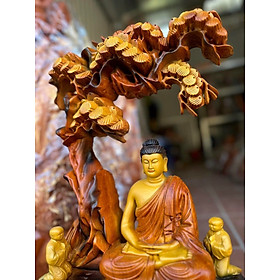 ✨Tượng phật thich ca ngồi gốc cây bồ đề bằng gỗ hương đá pu giả cổ kt 50×26×12cm