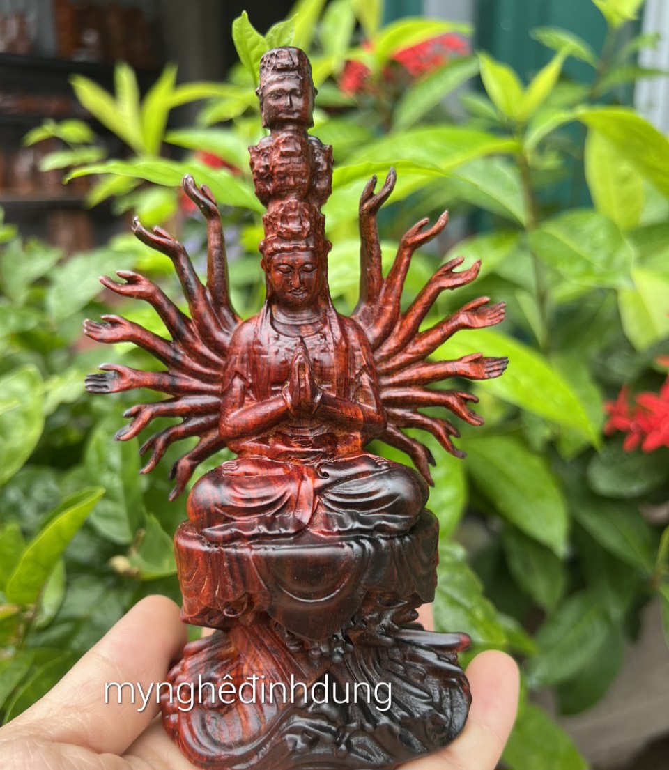 ✨Tượng phật thiên thủ thiên nhãn bằng gỗ trắc đỏ đen kt cao 15x11x6cm