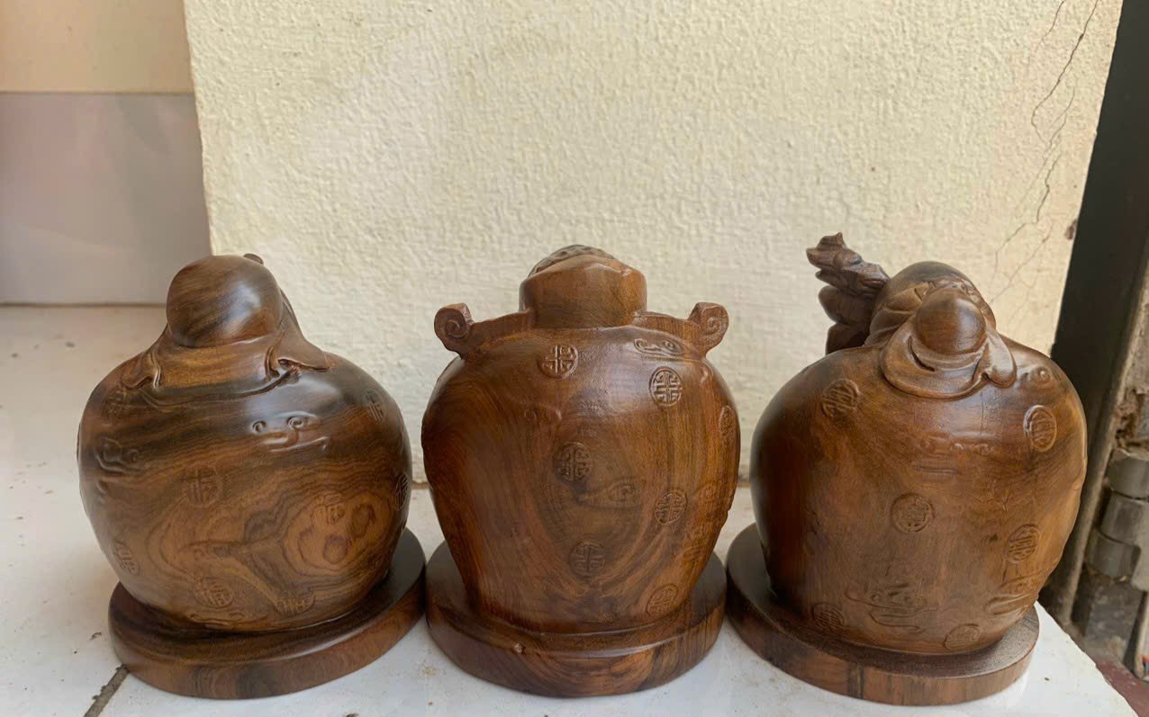 ✨Tượng tam đa phúc lộc thọ mini bằng gỗ bách xanh kt 10×8×8cm