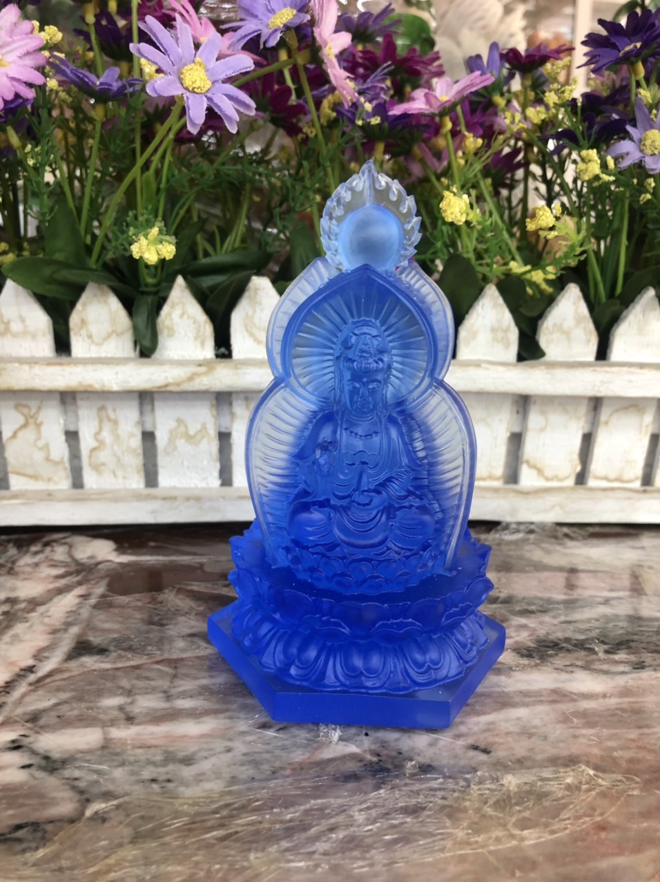 Tượng Phật Bà Quan Âm Mới Đá Lưu Ly Xanh Lá Tươi Đẹp Để Xe Hơi hoặc để bàn cao 12cm đk 7cm đế 5cm Hợp Mệnh Hỏa Mệnh Mộc ạ *** Tượng Phật Bà