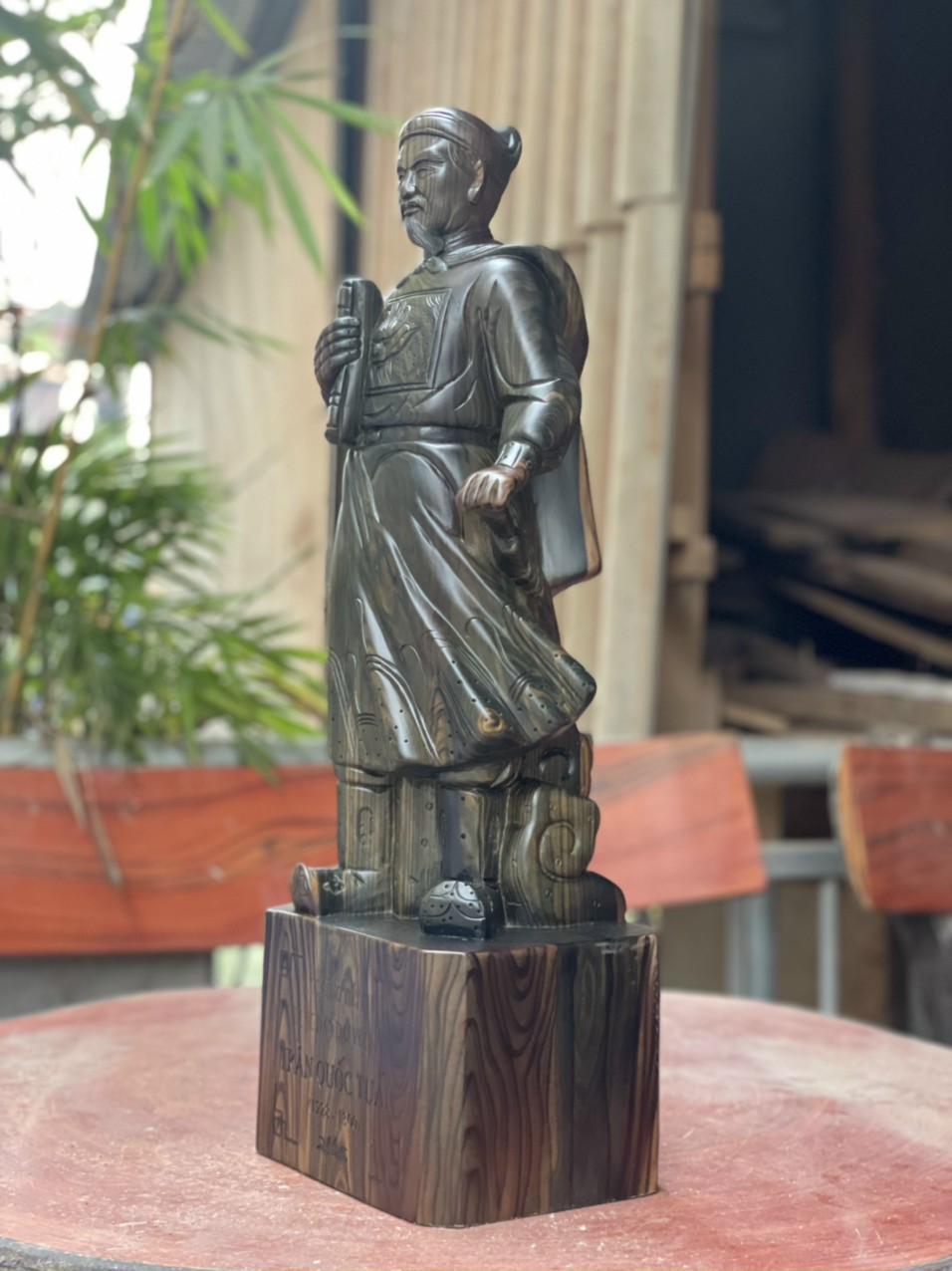 _ Tượng trần quốc tuấn ( Trần hưng đạo vương ) Được làm bằng chất liệu gỗ mun hoa liền khối tự nhiên 100%