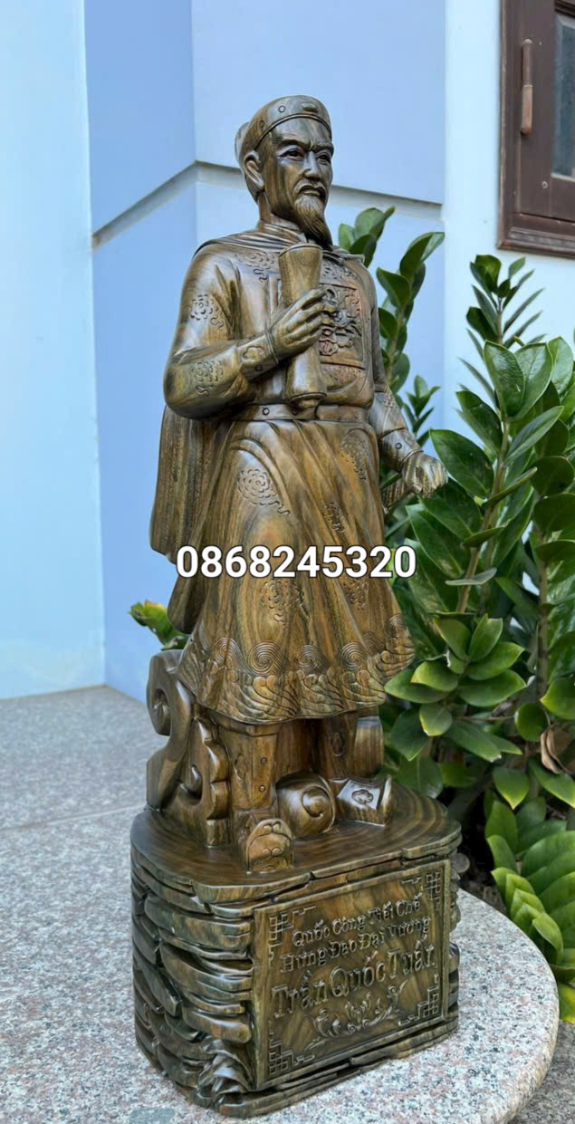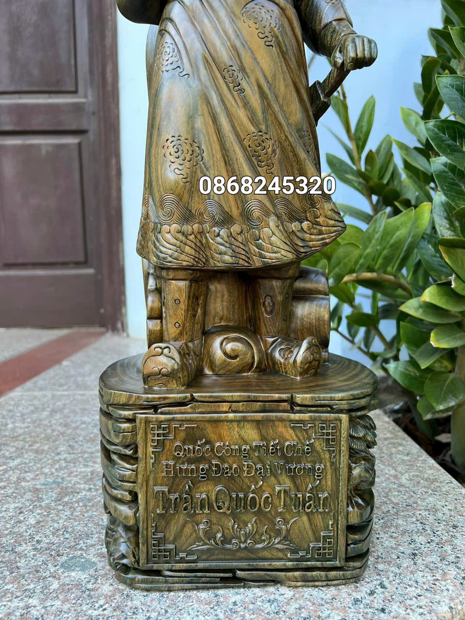 Mua tại Tiktok_ Tượng trần quốc trần hưng đạo vương được làm bằng chất liệu liệu gỗ trắc xanh liền khối tự nhiên 100%