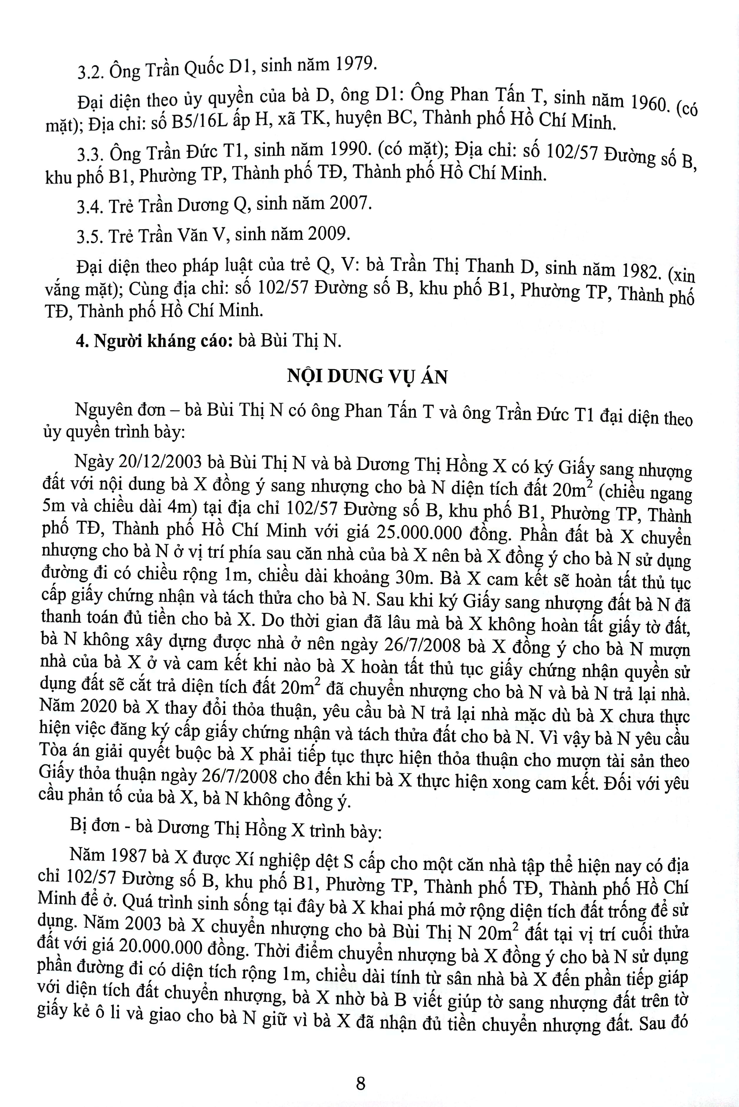 Phần thứ ba. Các Bản án của Tòa án nhân dân cấp cao về quyền sở hữu tài sản Hy vọng rằng đây sẽ là tài liệu hữu ích để bạn đọc, đặc biệt là Thẩm phán, Thẩm tra viên, Hội thẩm, Kiểm sát viên, Luật sư và các học viên tư pháp và những người làm công tác pháp luật nghiên cứu, áp dụng trong thực tiễn xét xử.