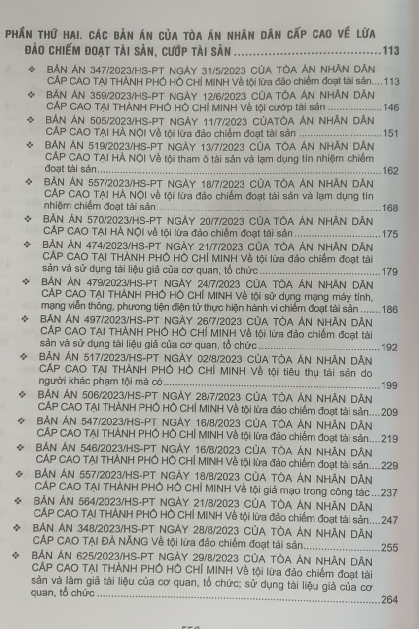 Phần thứ hai. Các Bản án của Tòa án nhân dân cấp cao về lừa đảo chiếm đoạt tài sản, cướp tài sản