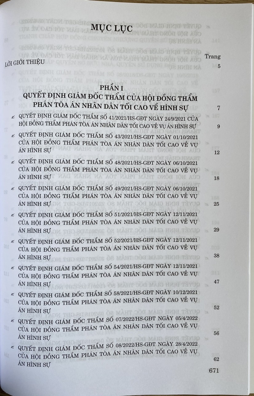 Phần I: Các quyết định giám đốc của Hội đồng Thẩm phán Tòa án nhân dân Tối cao về hình sự
