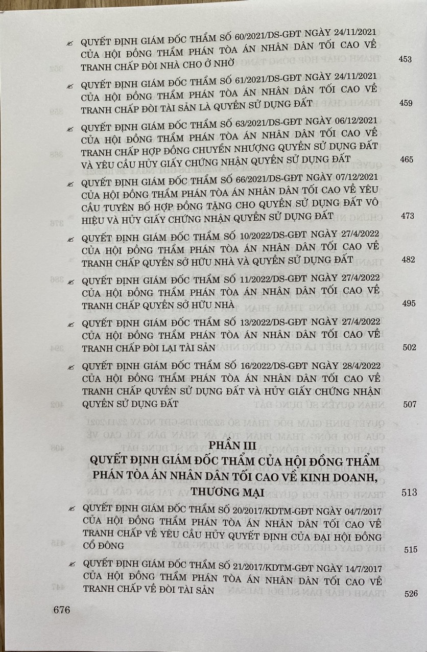 Phần III: Các quyết định giám đốc thẩm của Hội đồng Thẩm phán Tòa án nhân dân Tối cao về kinh doanh thương mại