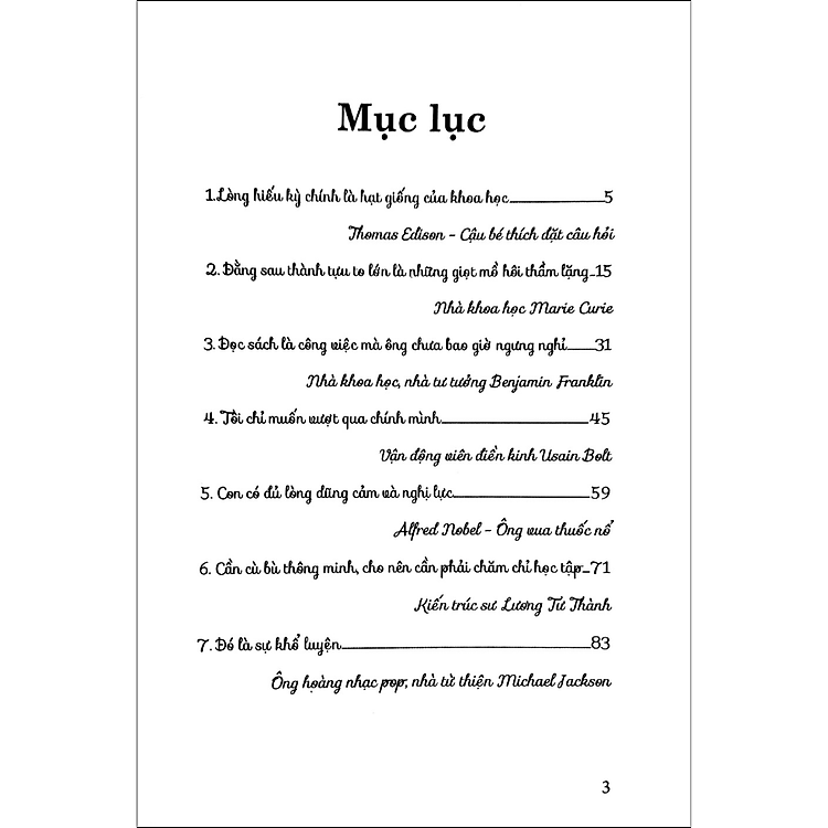 Mua tại TiktokBộ sách Tuyển tập những câu chuyện về các danh nhân nổi tiếng thế giới gồm 5 tập, tái hiện lại cuộc đời của gần 60 nhân vật nổi tiếng như Albert Einstein, Alfred Nobel, Thomas Edison, Marie Curie, Stephen Hawking… Tất cả họ đều là những con người vô cùng tài giỏi, những cố gắng của họ đã biến những điều tưởng chừng không thể thành có thể và tạo ra vô số thay đổi lớn lao trong lĩnh vực mà họ cống hiến, thậm chí làm nên những bước ngoặt trong lịch sử nhân loại .