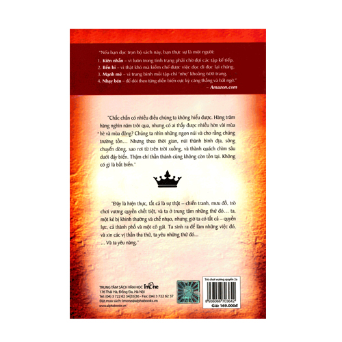 Bộ sách đồ sộ và đình đám Trò chơi vương quyền là một series tiểu thuyết sử thi viễn tưởng của tiểu thuyết gia nổi tiếng người Mỹ George R. R. Martin. Lấy cảm hứng từ tiểu thuyết "Cuộc chiến hoa hồng" và "Ivanhoe" Martin bắt đầu viết bộ sách vào năm 1991 và năm 1996 ông cho ra mắt ấn phẩm đầu tiên. Cuốn tiểu thuyết cũng như cả bộ sách nhanh chóng nhận được sự đón chào nhiệt liệt của một lượng fan hâm mộ khổng lồ, trở thành các tác phẩm best seller của nhiều bảng xếp hạng uy tín.