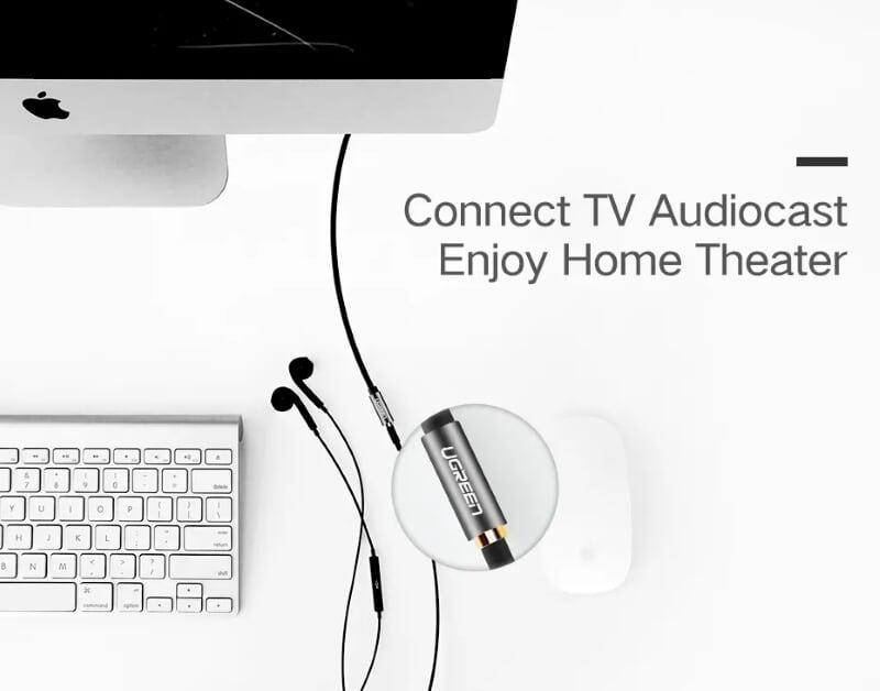 - Cáp Chuyển Đổi Ugreen 3.5mm Sang 2 RCA 10511 (1.5m) được dùng để kết nối từ điện thoại, máy tính, máy nghe nhạc… đến các thiết bị âm thanh có chuẩn RCA (hoa sen)