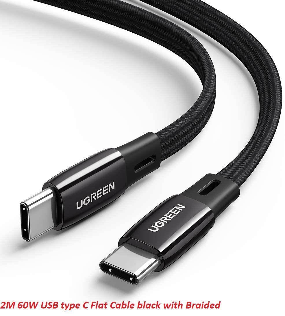 ✨Ugreen UG10969US331TK 2M 60W màu đen cáp USB type C dẹp mạ nickel chống nhiễu - HÀNG CHÍNH HÃNG