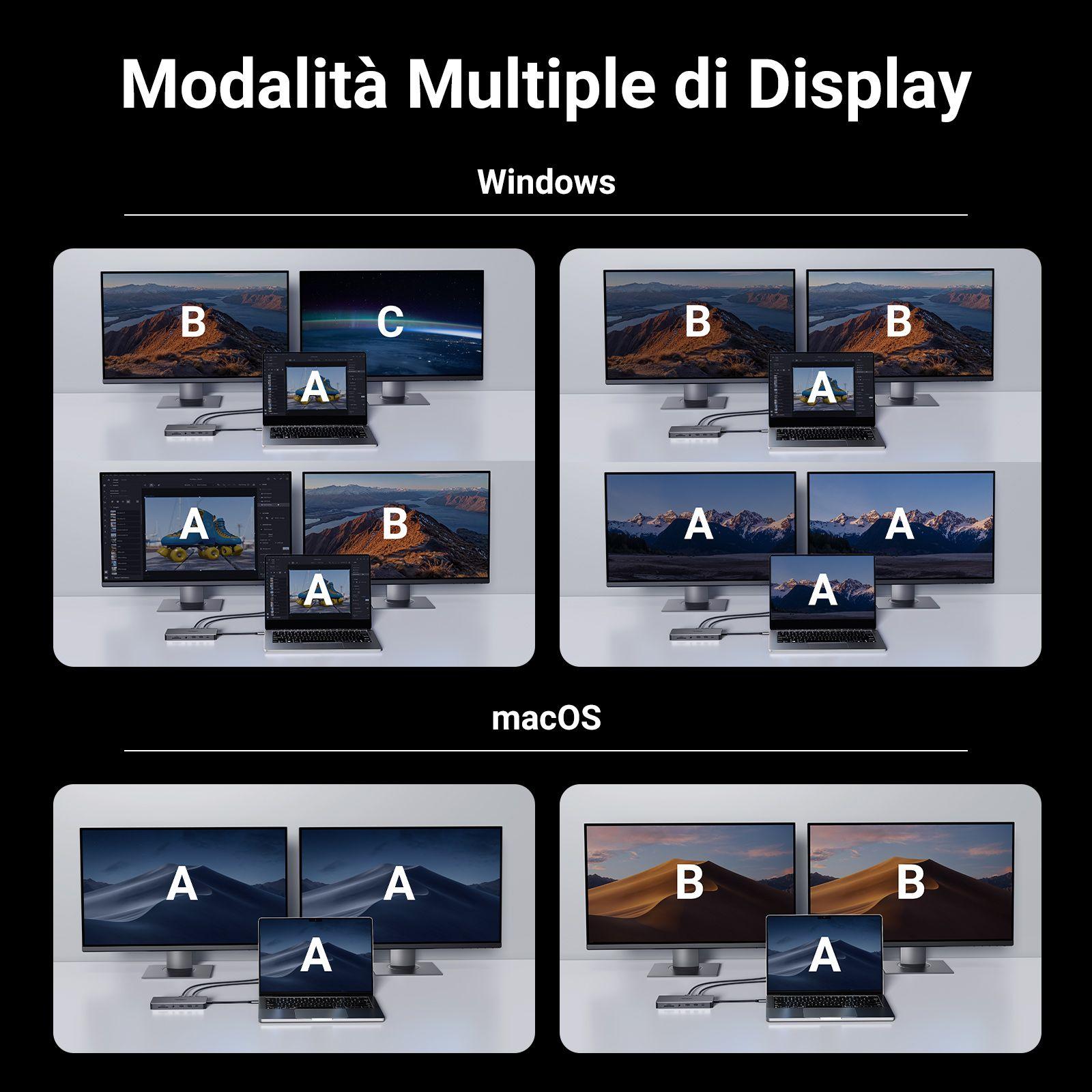 Ugreen 90325 USB type C to 1xusb A 10G + 1xusb-C 10G + 2xusb-A 5G + 2xHDMI 4K60Hz + DP + RJ45 Gigabit + SD/TF + 3.5mm Audio + PD Multifunction Docking Station MST for
