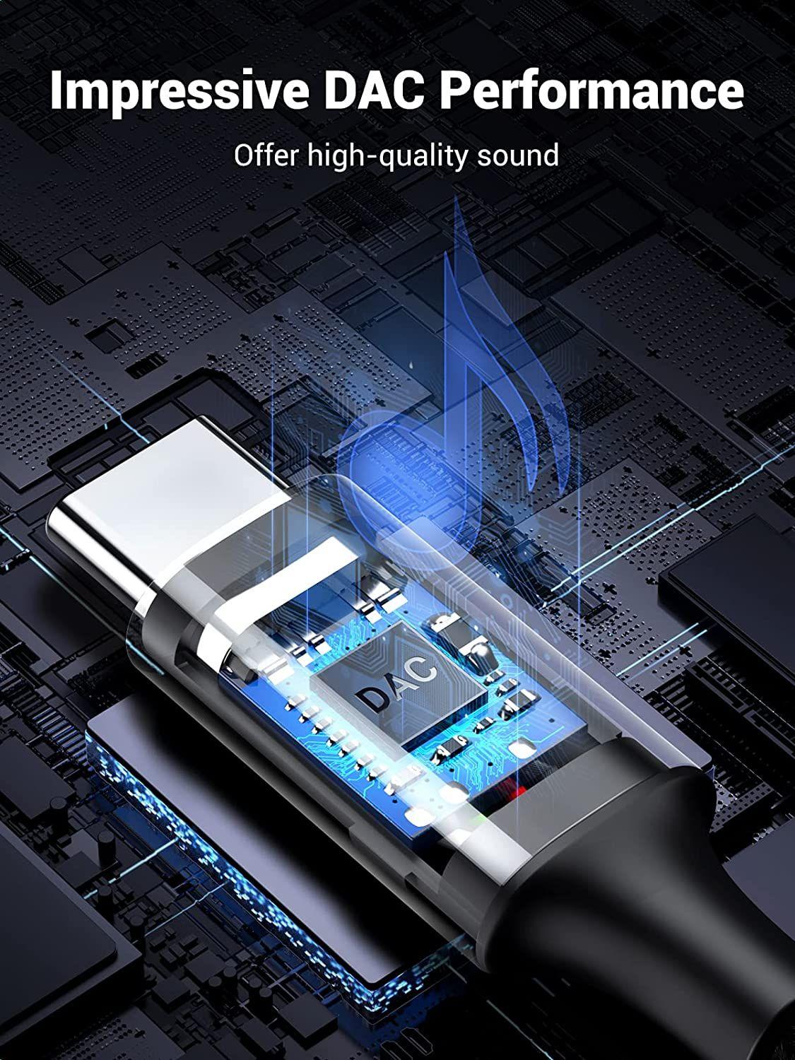 1. Type: Audio cable 2. Outer diameter: 3.2 mm 3. Connector A: 3.5mm AUX male 4. Connector B: USB Type-C 5. Length: 1m
