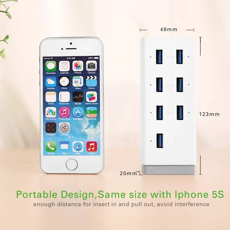Ugreen 20296 7 ports usb 3.0 charging hub màu trắng cr116 1. with 12V 2A power adapter With BC1.2 2. Color : White 3. 500g 4. 20 x 15 x 5 cm