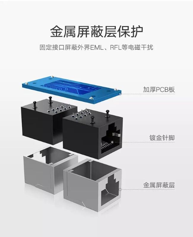 1. Data transfer rate: 10G 2. Frequency: 600MHz 3. 4 shielded twisted pair (U/FTP) of copper wires 4. Pure Copper Core