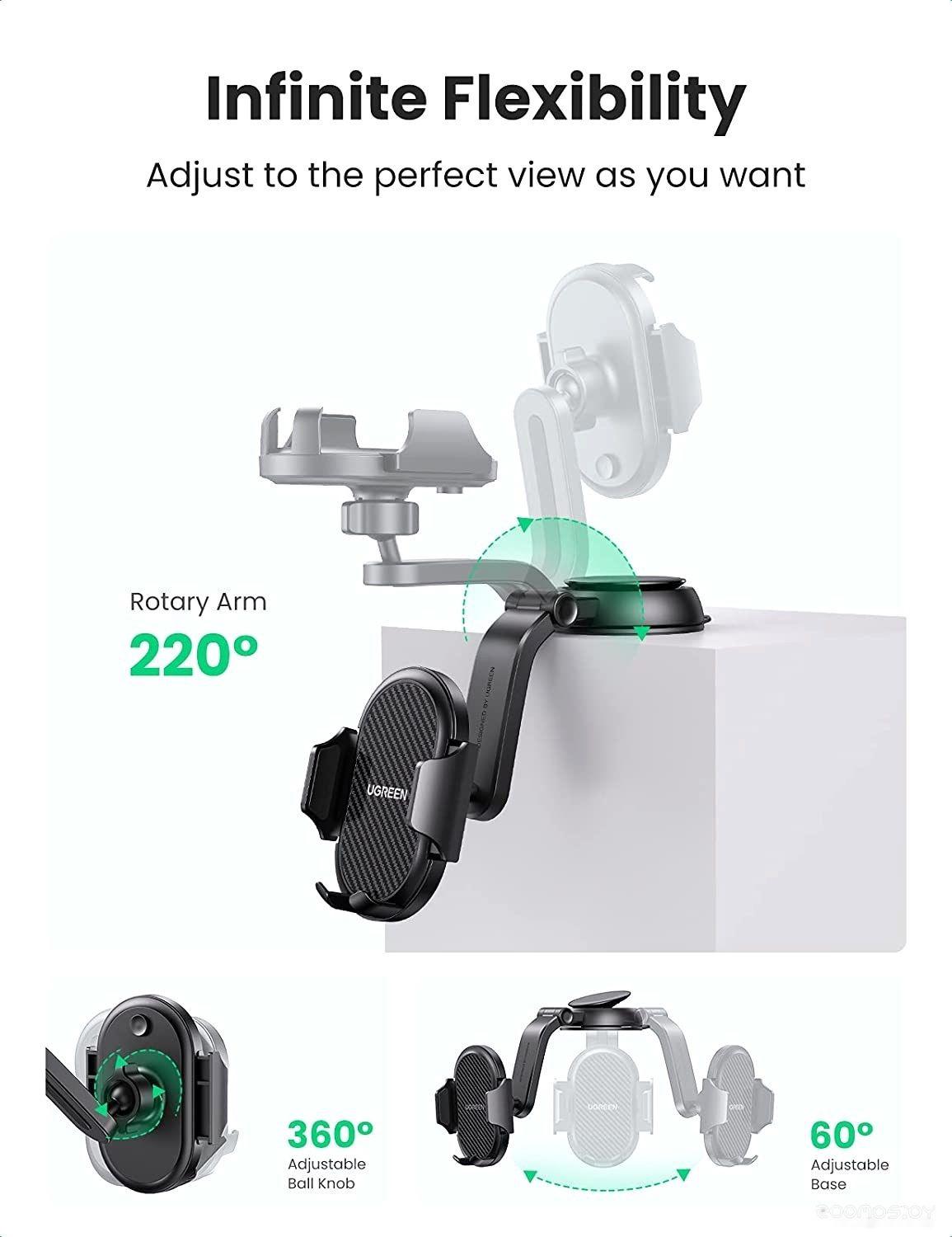 1. Brand : Ugreen 2. Model : 28606 - 60990B 3. Color : Black 4. Handle type: gravity 6. Mounting way: on the panel 7. Compatible phones: 4.7 - 7 inches 8. Material: (PC ABS)
