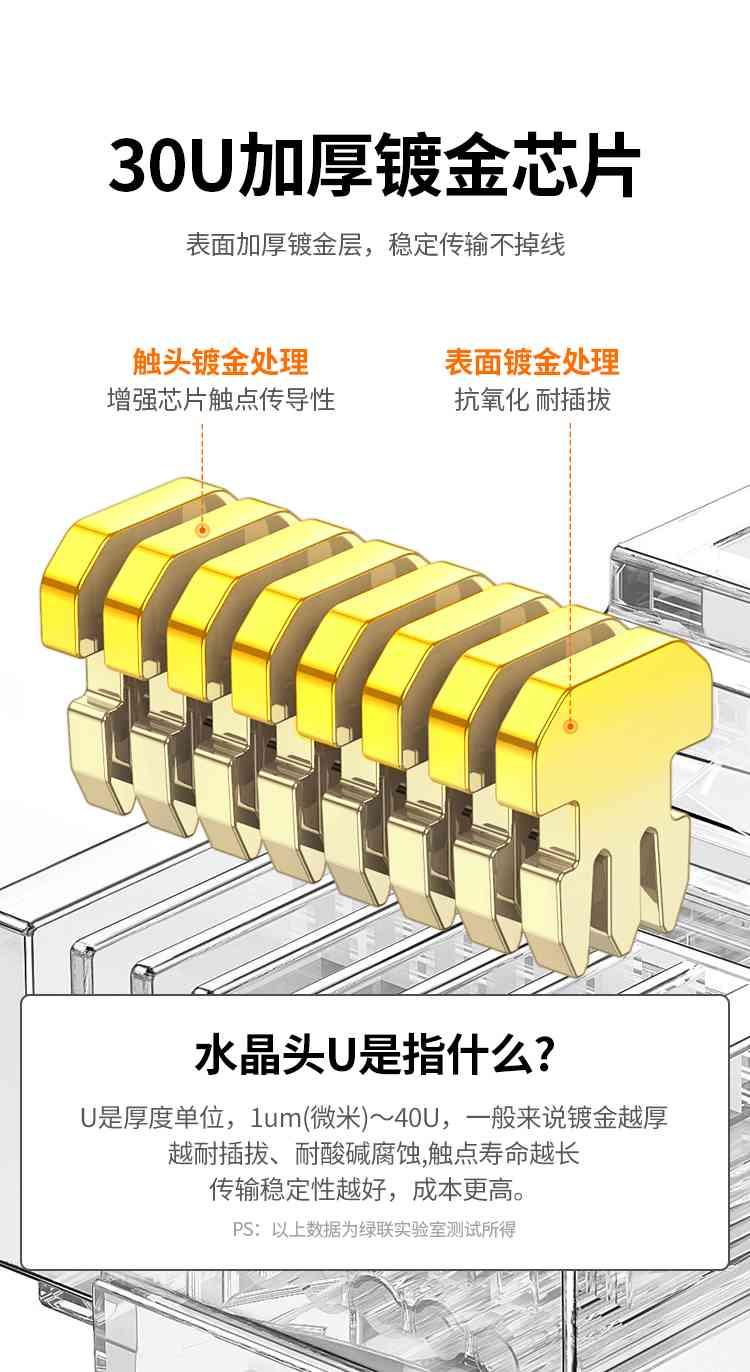 1. Data transfer rate: 10G 2. Frequency: 600MHz 3. 4 shielded twisted pair (U/FTP) of copper wires 4. Pure Copper Core