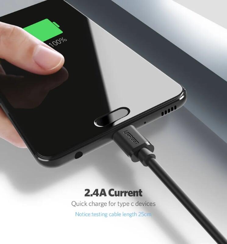 Cáp sạc nhanh USB Type C (1 đầu USB, 1 đầu USB Type-C) độ dài 2m UGREEN US28 (Giá 74k)
