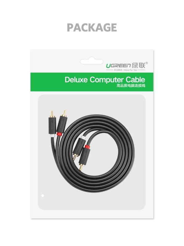 - Cáp Chuyển Đổi Ugreen 3.5mm Sang 2 RCA 10511 (1.5m) được dùng để kết nối từ điện thoại, máy tính, máy nghe nhạc… đến các thiết bị âm thanh có chuẩn RCA (hoa sen)