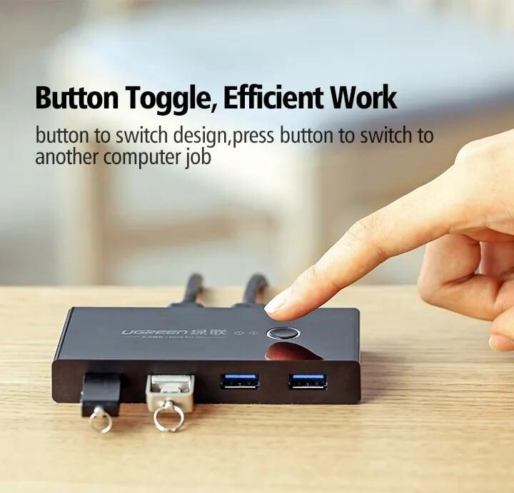 Ugreen 30768 2 in 4 out usb2.0 sharing switch box usb 3.0 us216 1. Two computer can use 4 same USB device simultaneously 2. USB 3.0 3. 280g 4. 25 x 15 x 5 cm
