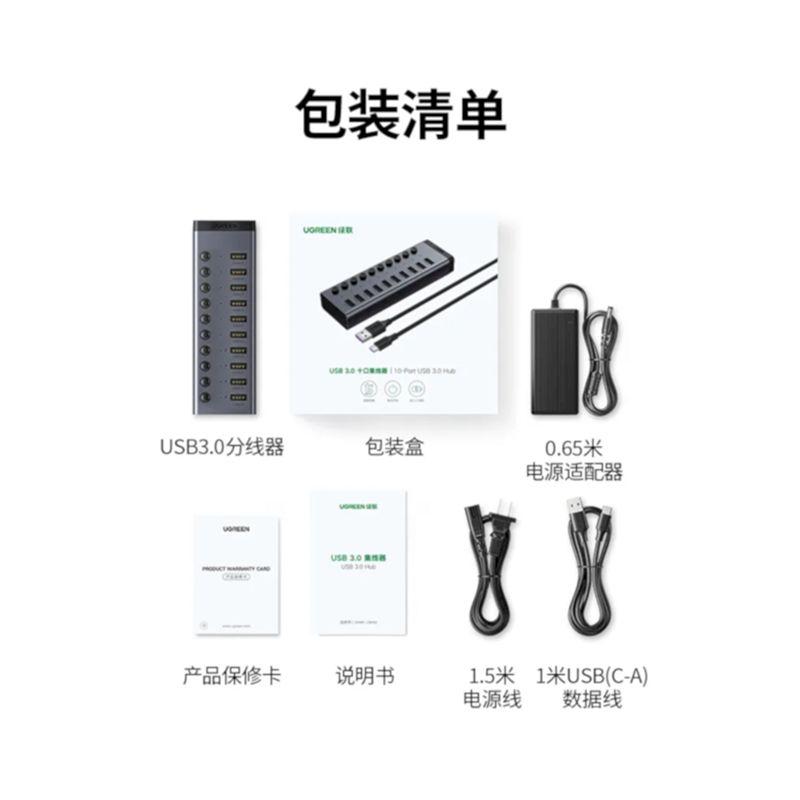 ✨Ugreen UG30779CM482TK 1M 10 cổng màu đen có công tắc Bộ chia HUB USB 3.0 kèm cáp Usb c To type A - HÀNG CHÍNH HÃNG