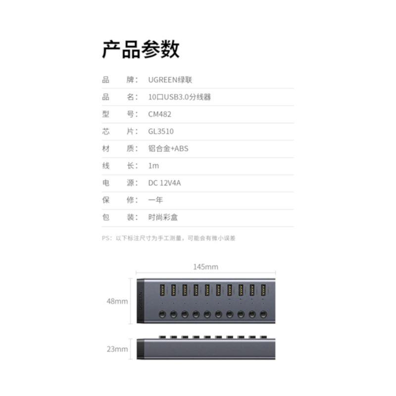 - Output: USB 3.0 A Female × 10 *Speed up to 5Gbps