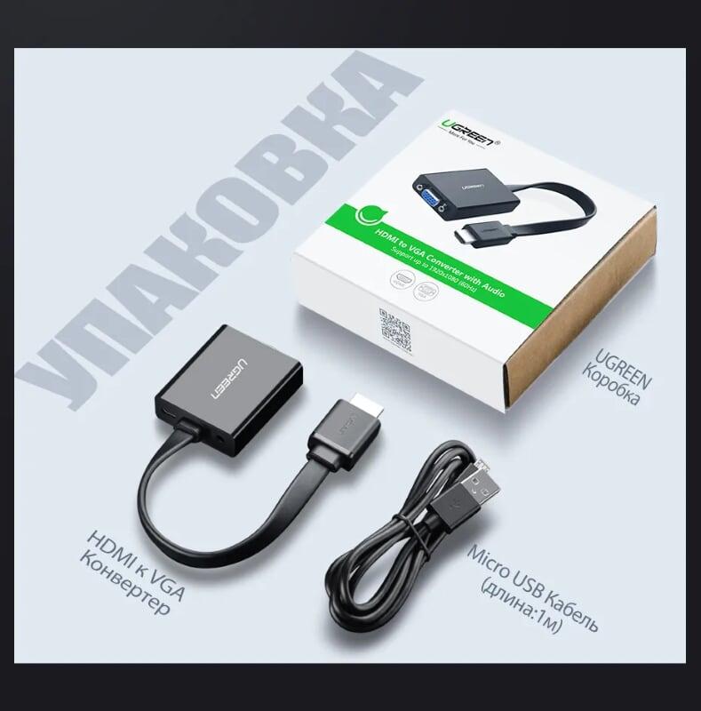 Ugreen 40248 Hdmi To Vga + 3.5Mm Audio + Mirco Usb Converter Flat Design Đen Mm103 1. Features: connect HDMI port device to monitor, projector with VGA port. 2. Cable length: 15CM 3. Wire form: