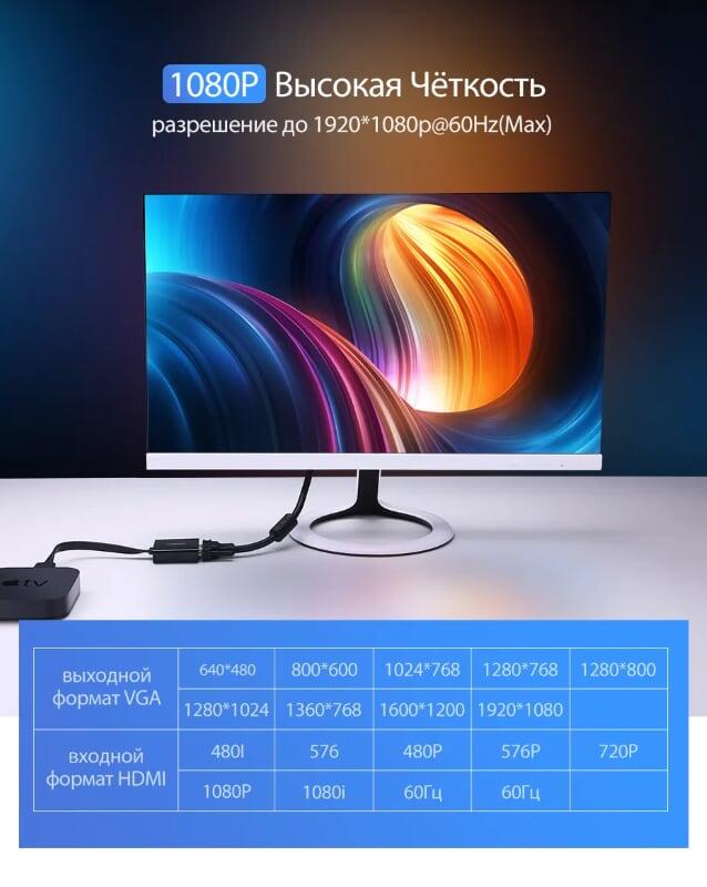 - Features: connect HDMI port device to monitor, projector with VGA port.