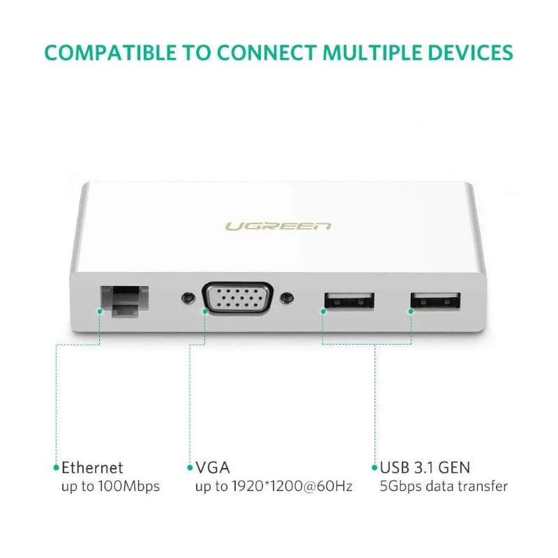 Mua tại TiktokUgreen 40378 type c to vga dual usb ethernet converter trắng mm135