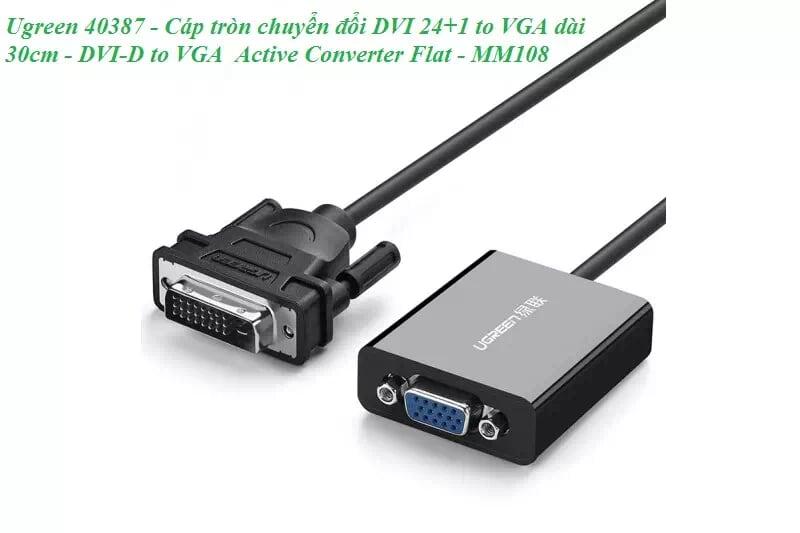 Ugreen 40387 Cáp tròn chuyển đổi DVI 24+1 to VGA dài 30cm DVI D to VGA Active Converter Flat MM108 1. Length : 30cm 2. Color : Black 3. DVI D to VGA Active Converter
