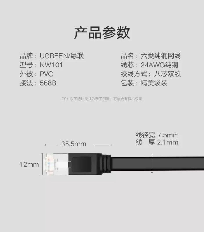 Mua tại TiktokUgreen 50185 2M màu Đen Cáp mạng LAN CAT 6 UTP dây dẹp NW101