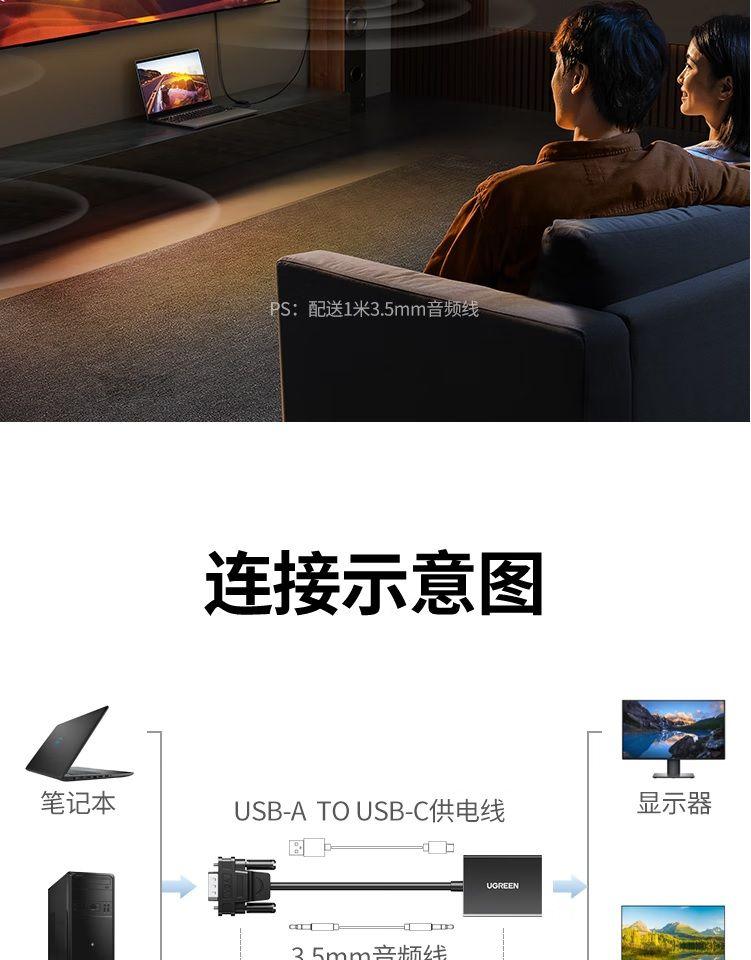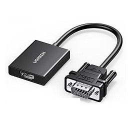 ✨Ugreen UG50945CM513TK 15CM 1920x1080 60Hz Bộ chuyển đổi VGA sang HDM kèm cáp nguồn USB-C dài 1M + cổng 3.5mm Màu Đen - HÀNG CHÍNH HÃNG