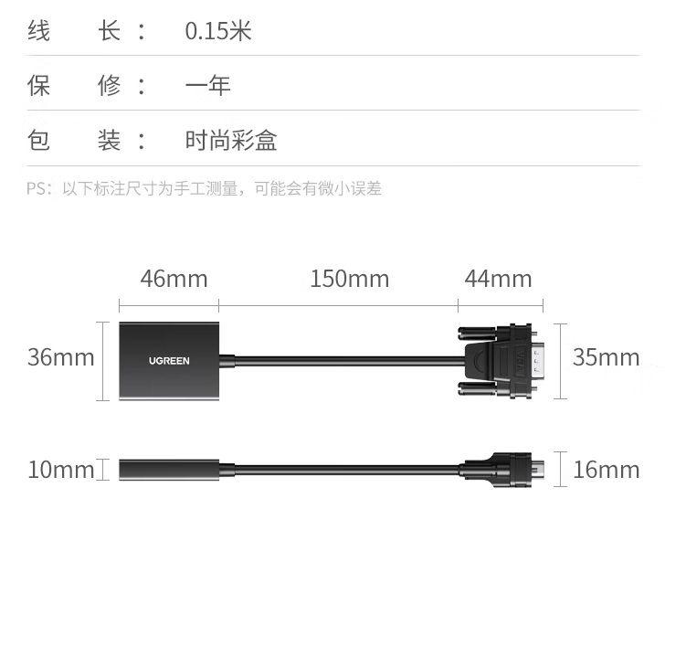 Ugreen 20122 DVI 24+5 To VGA Female Adapter Gold Connector Converter 1. HDMI adapter dvi vga adapter connector converter - DVI (24 + 5) to VGA female adapter 2. Color: Black 3. 100 g 4.