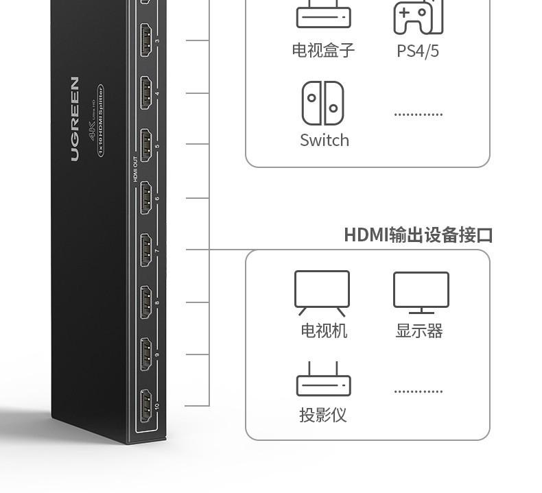✨Ugreen UG50949US300TK 1 in 10 Out 4k 30hz 1080p 60hz HDMI Splitter Aluminum alloy with 12v adapter - HÀNG CHÍNH HÃNG