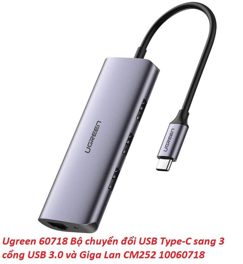 ✨Ugreen UG60718CM252TK USB Type C Bộ chuyển đổi sang 3 cổng USB 3.0 và Giga Lan hỗ trợ nguồn micro usb - HÀNG CHÍNH HÃNG