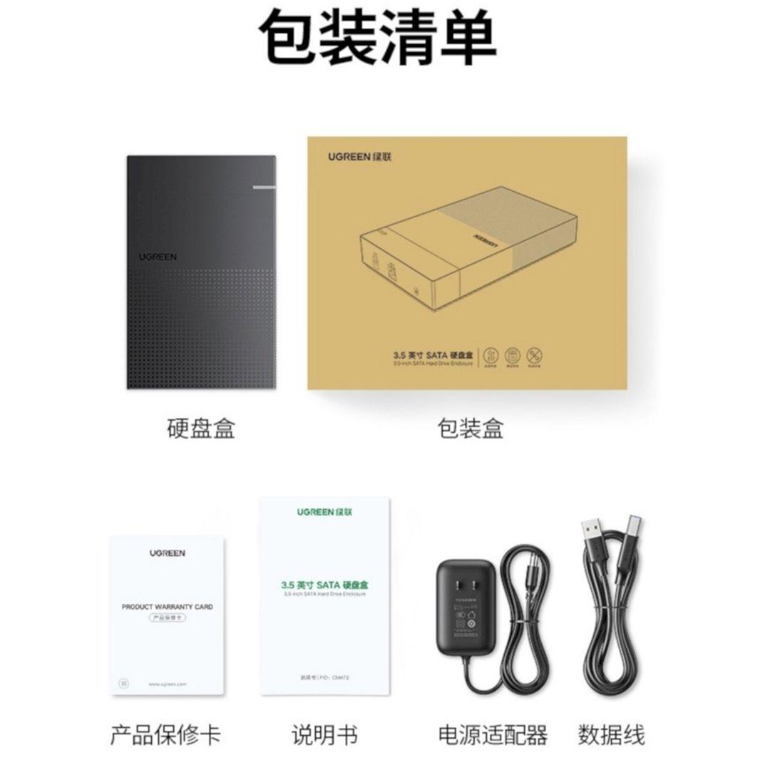 Ugreen 50422 usb 3.0 3.5 inch hard disk box black us222 1. Input:USB3.0-B Female adapter 2. Output:(7+15)Pin SATA port 3. Suppot UASP transport protocol 2. Support SATA 3.0 compatible with SATA 2.0/SATA 1.0 4. Support