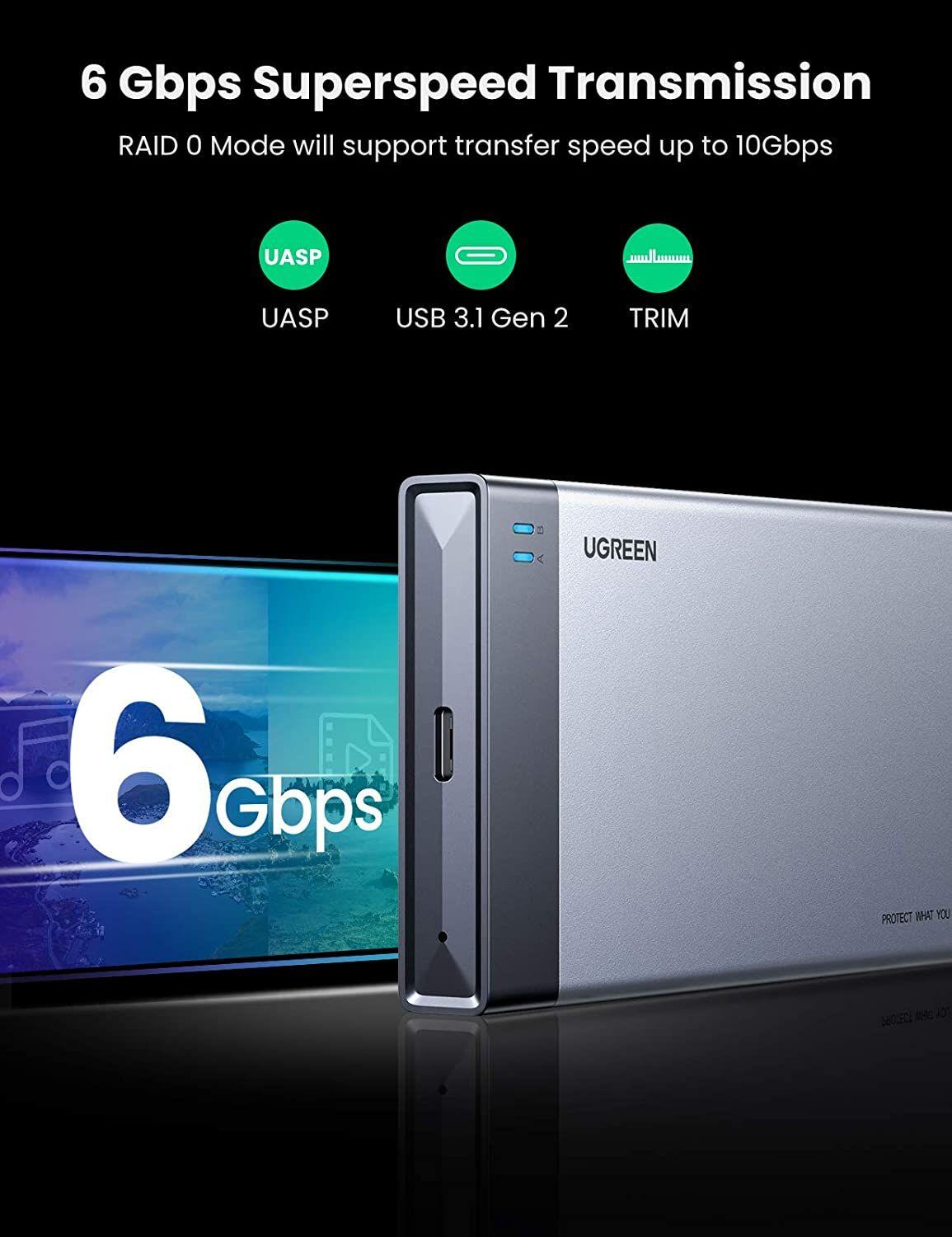 ✨Ugreen UG70534CM299TK usb type c 3.1 gen2 hộp đựng 2 ổ cứng ssd M.2 B-KEY SATA - NGFF Raid 6Gbps - HÀNG CHÍNH HÃNG