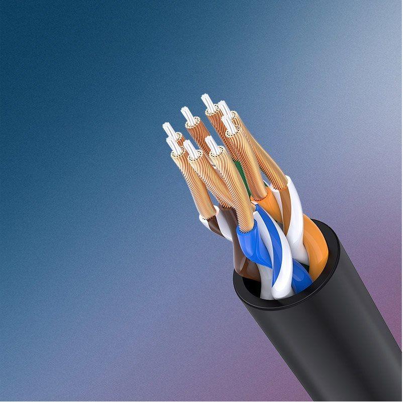 1. Data transfer rate: 10G 2. Frequency: 600MHz 3. 4 shielded twisted pair (U/FTP) of copper wires 4. Pure Copper Core