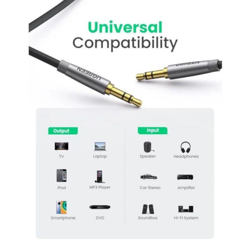 Ugreen 50361 3.5Mm Male To Male Audio Cable 1M AV112 1. Features: Connect audio from the transmitter to the speaker via the 3.5mm audio port 2. Cable length: 1M 3. Color: Black 4. Connection: 2