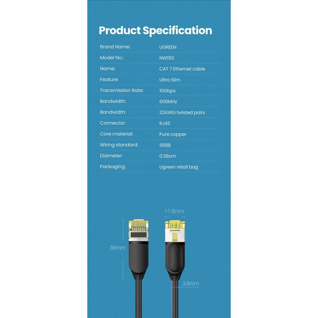 ✨Ugreen UG80414NW149TK 0.5M 10Gbps màu đen cáp mạng CAT7 siêu mỏng nhỏ 0.38mm - HÀNG CHÍNH HÃNG