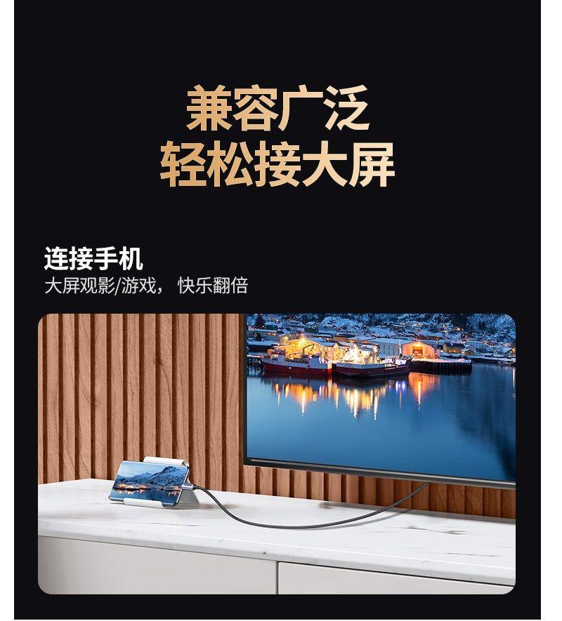 1. 8K resolution support at 60Hz and 4K resolution support at 120Hz for high-definition video and audio. 2. HDR (High Dynamic Range) support for improved color depth, contrast, and brightness. 3. Plug-and-play design, no additional