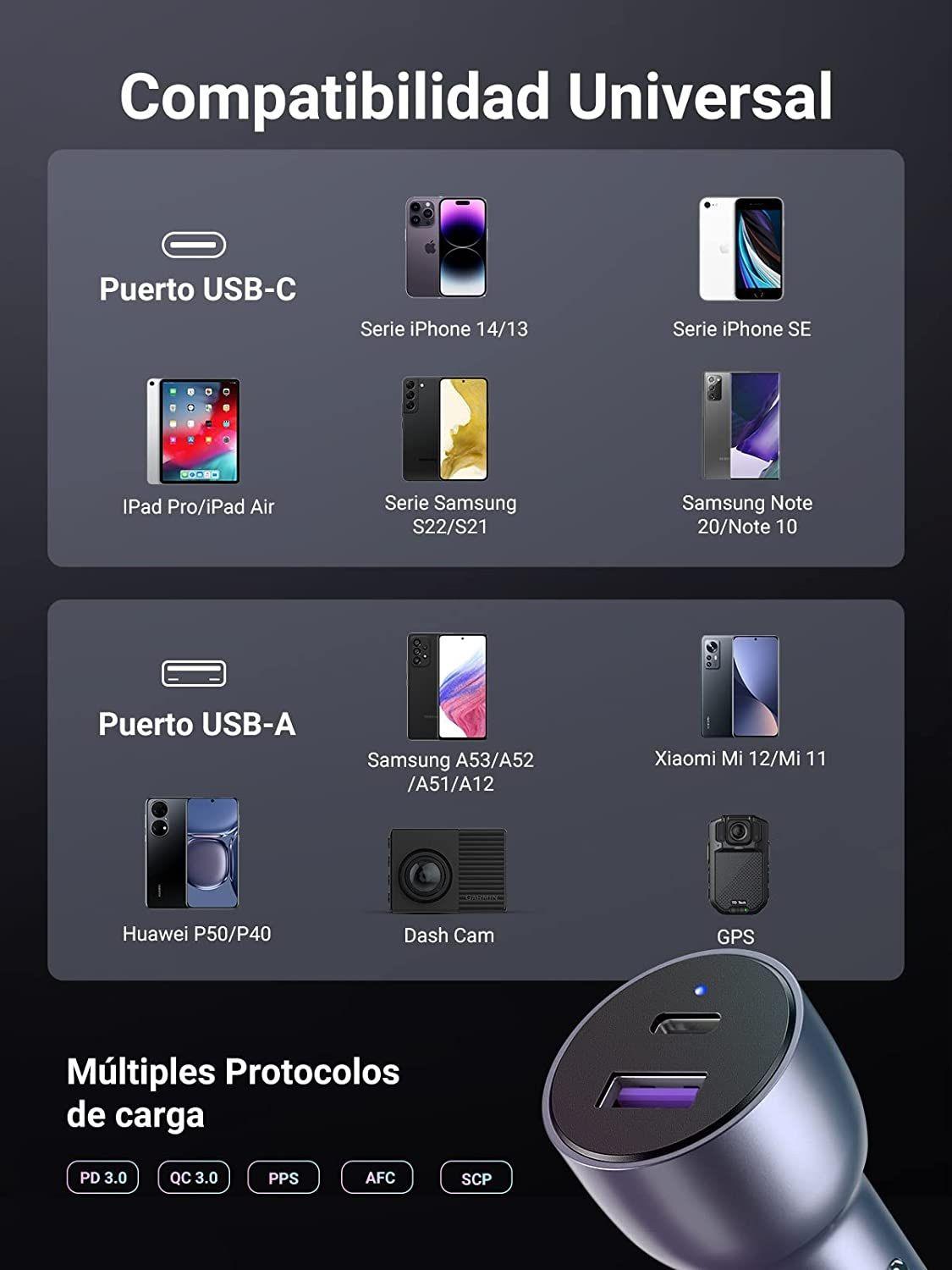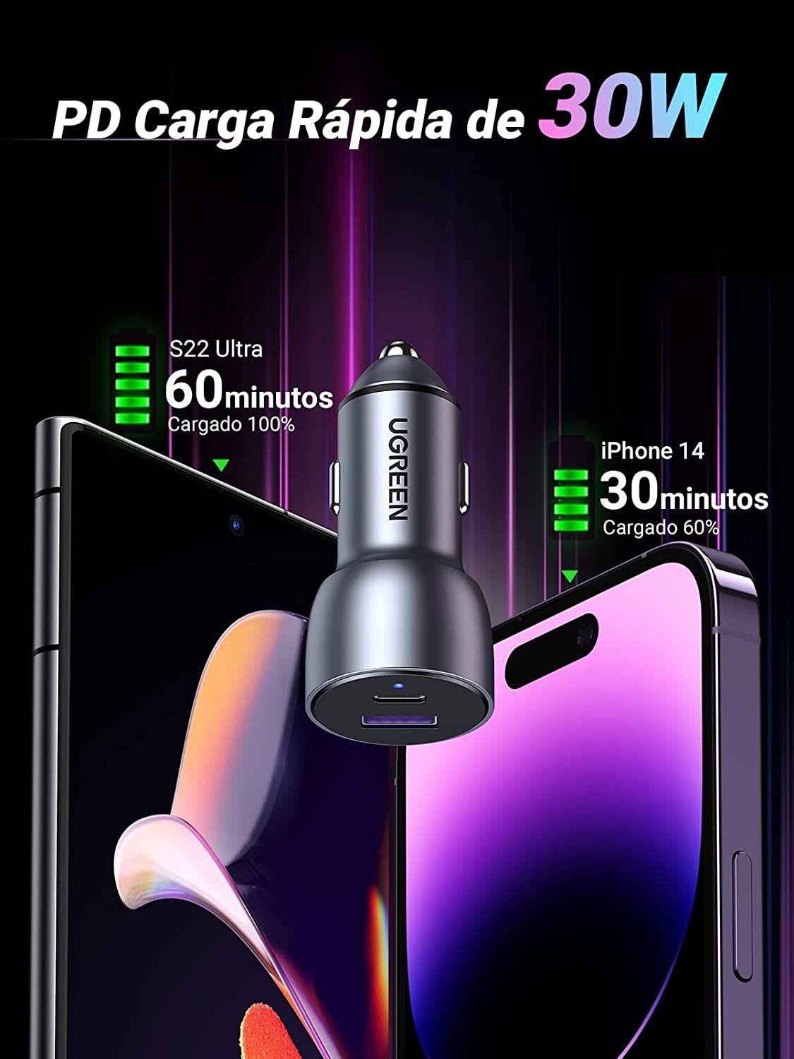 ✨Ugreen UG90797CD213TK PD45W + QC3.0 18W Màu XámTẩu Sạc nhanh cho xe hơi gồm cổng USB-C PD45W + USB-A QC3.0 18W - HÀNG CHÍNH HÃNG
