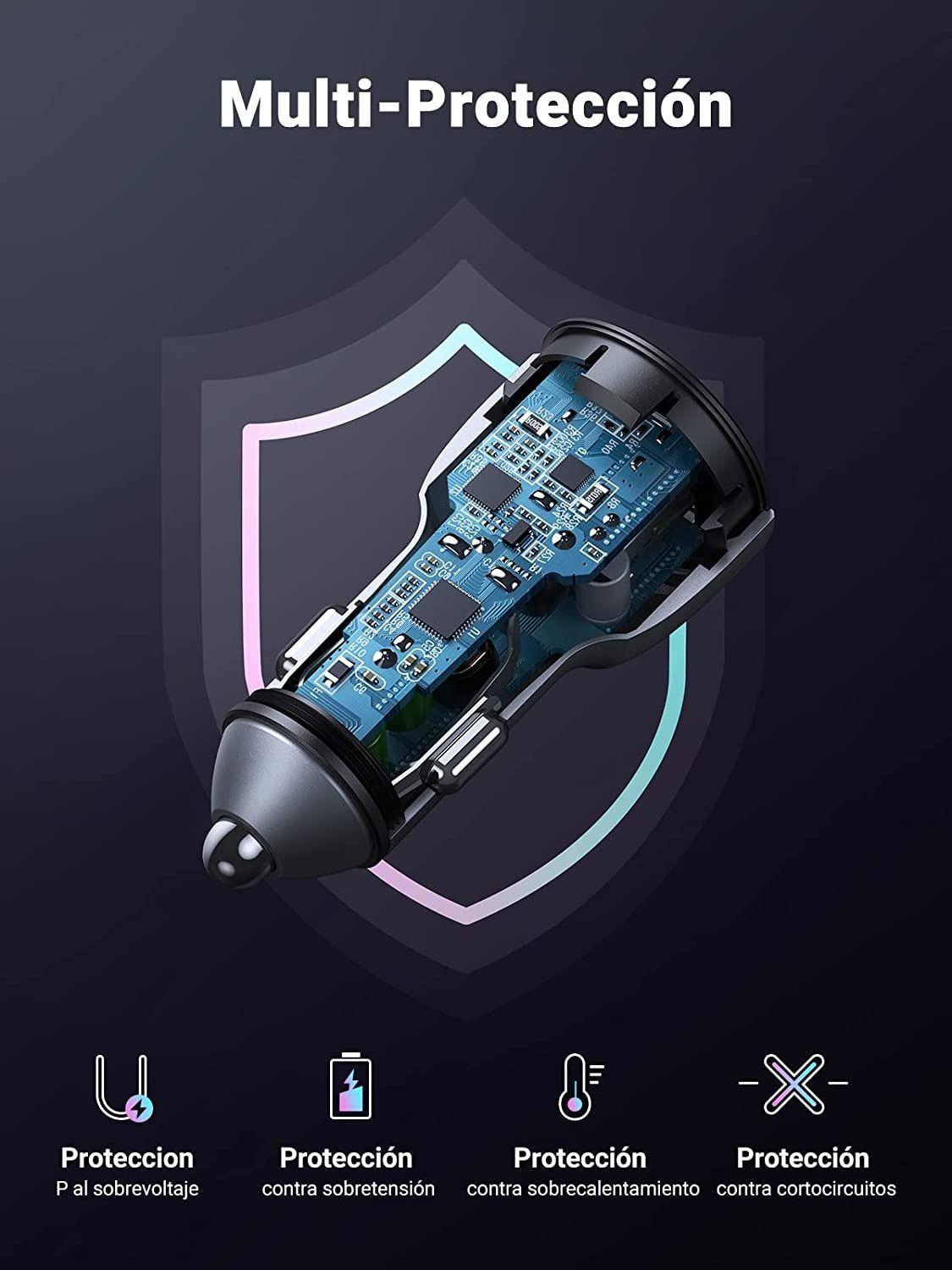 Ugreen 30780 black 18W Usb QC3.0 And Type C Car Charger Sạc Xe Hơi Ô Tô Cd130 1. Metal Car Charger Dual USB 2. Input: DC 12-24V USB-A 3. Output: 5V-2.4A 4. Max PD Output: