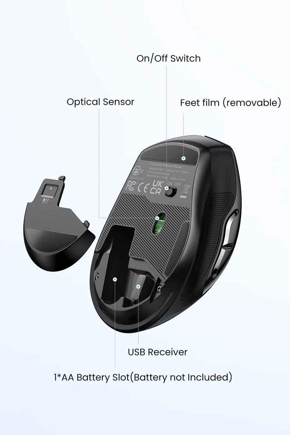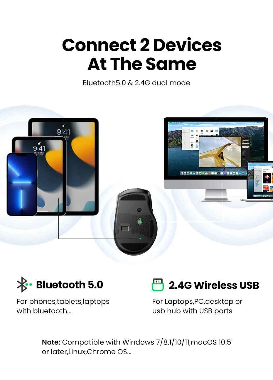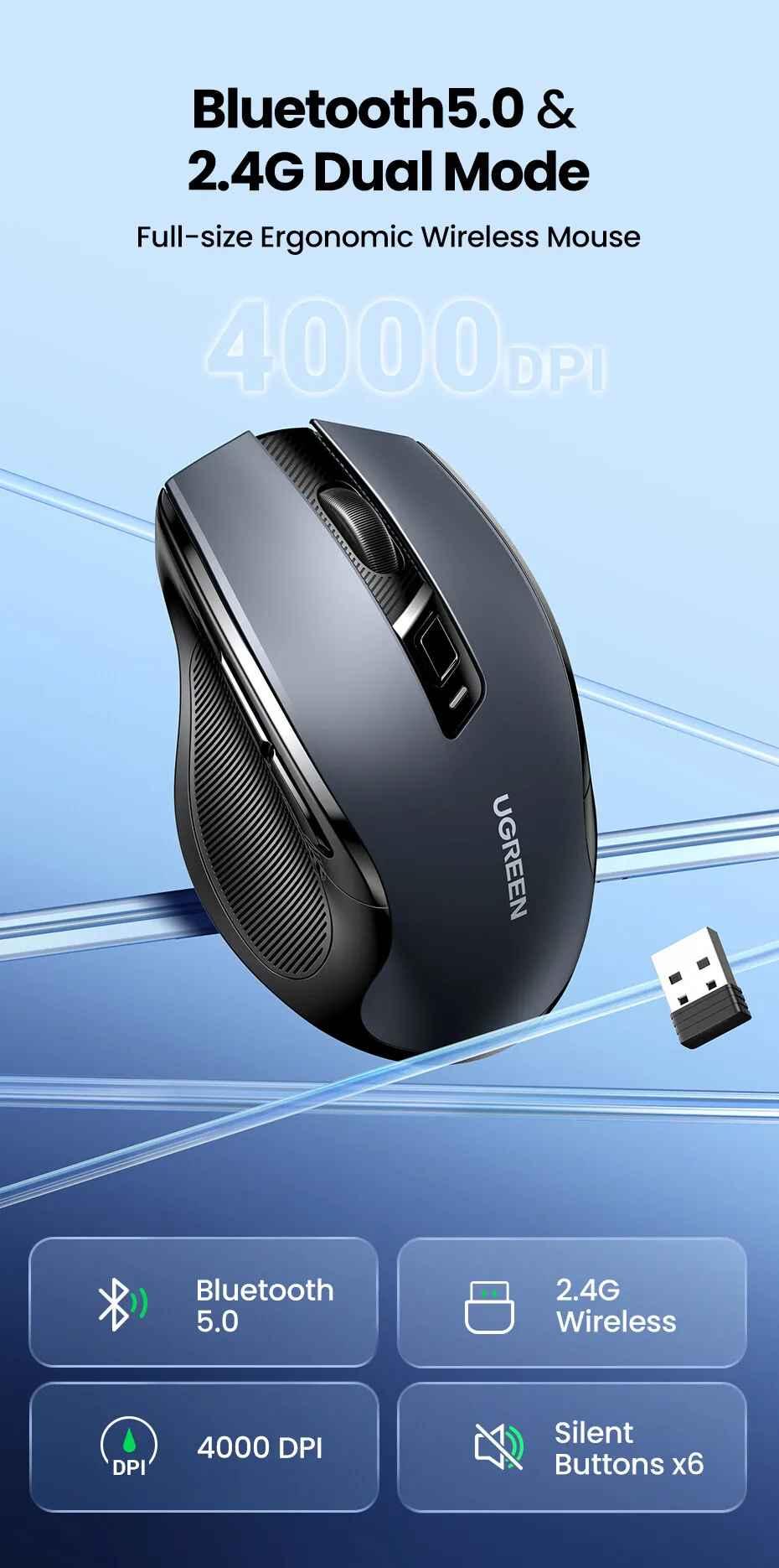 ✨Ugreen UG90855MU006TK 4000dpi 2.4Ghz Bluetooth Chuột không dây + Bluetooth Ergonomic Mouse không kèm pin AA - HÀNG CHÍNH HÃNG