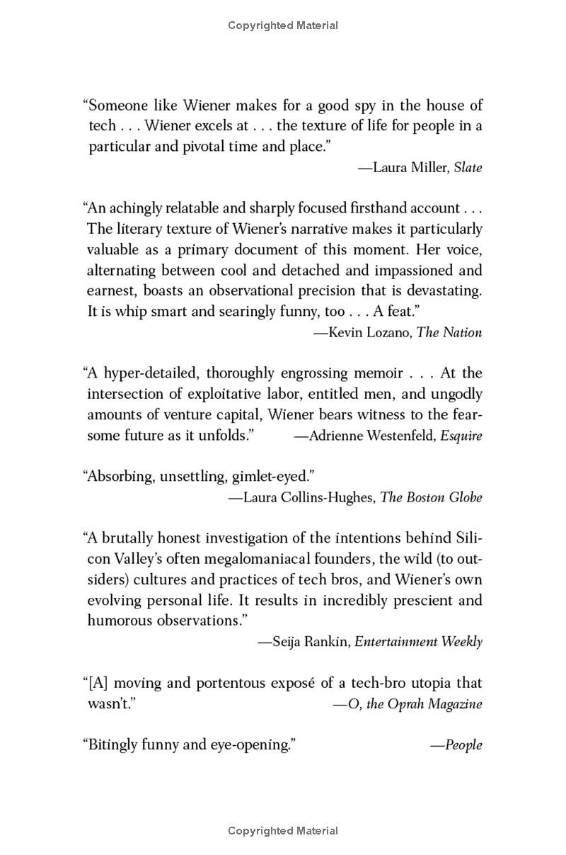 At twenty-five years old, Anna Wiener was beginning to tire of her assistant job in New York publishing. There was no room to grow, and the voyeuristic thrill of answering someone else’s phone had worn thin.